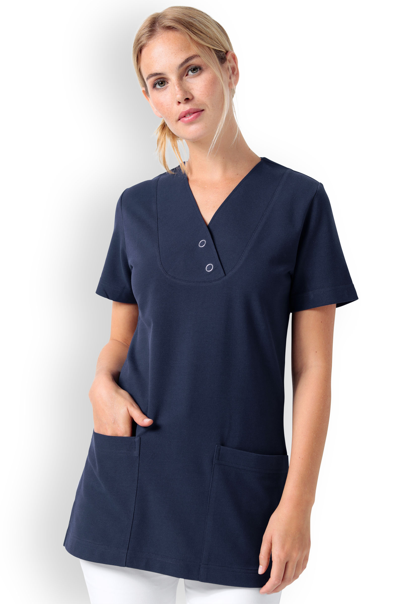 Naisten pitkä paita, tummansininen, v-kaulus