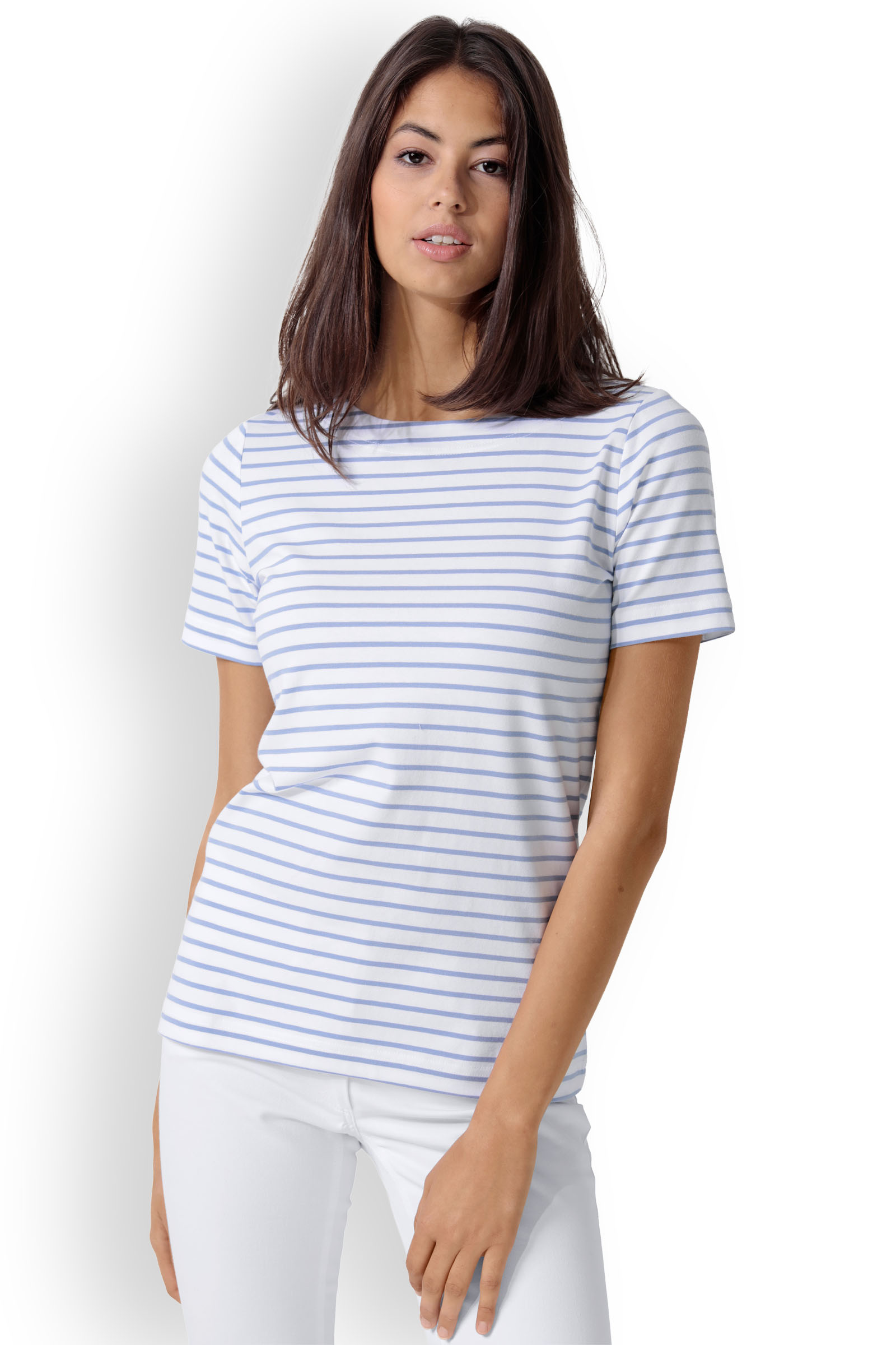Naisten raidallinen paita, valkoinen-sininen