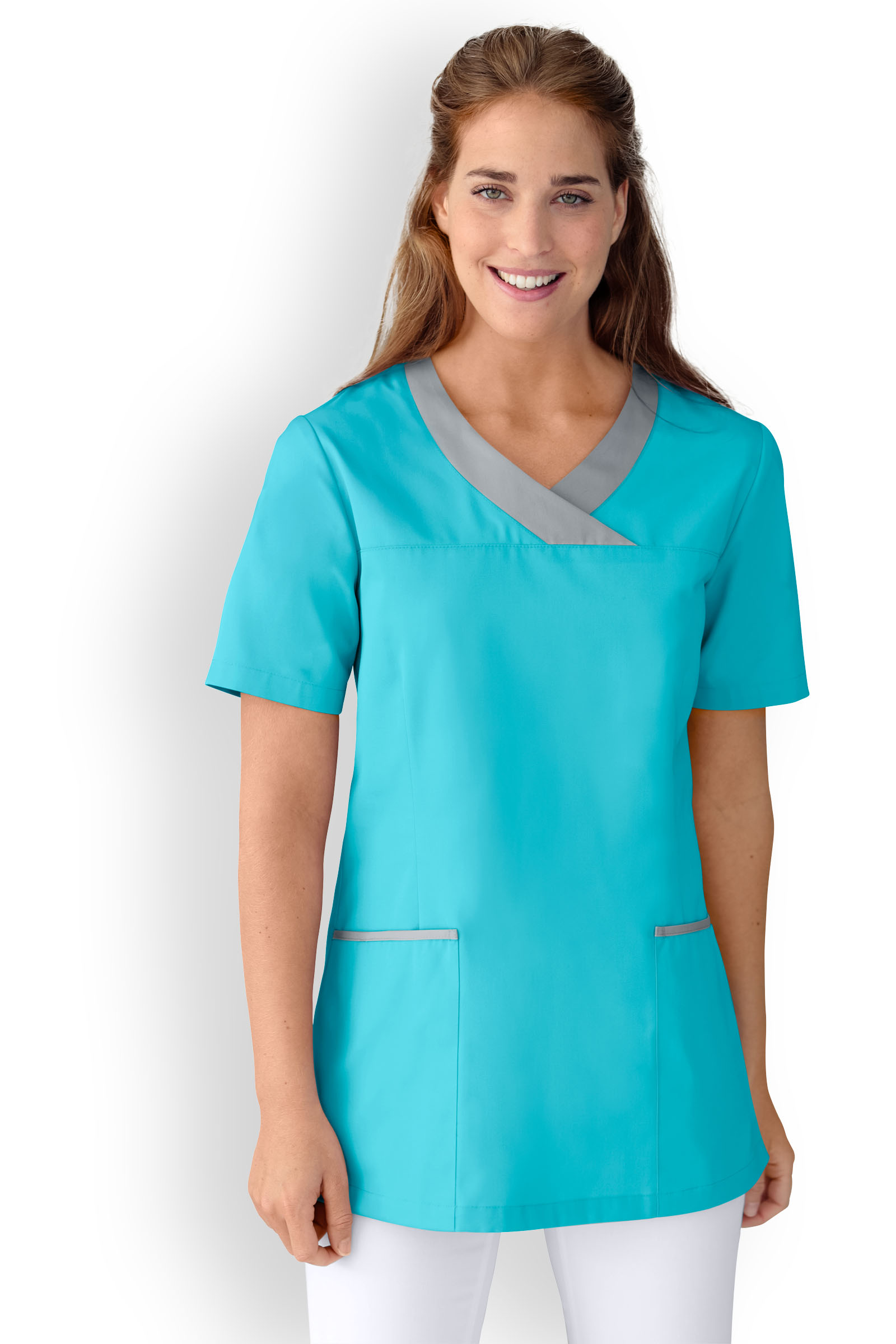Naisten työtakki, merensininen, harmaa koriste