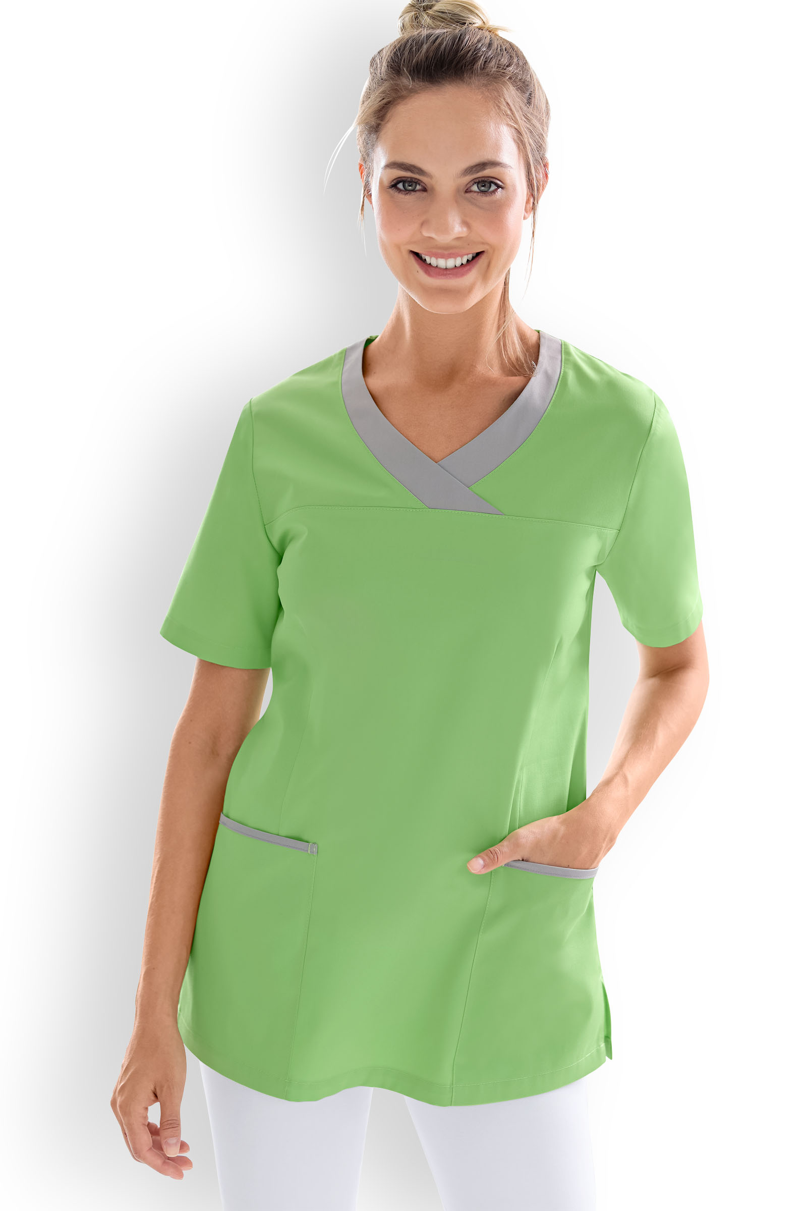 Naisten työtakki, omenanvihreä-harmaa