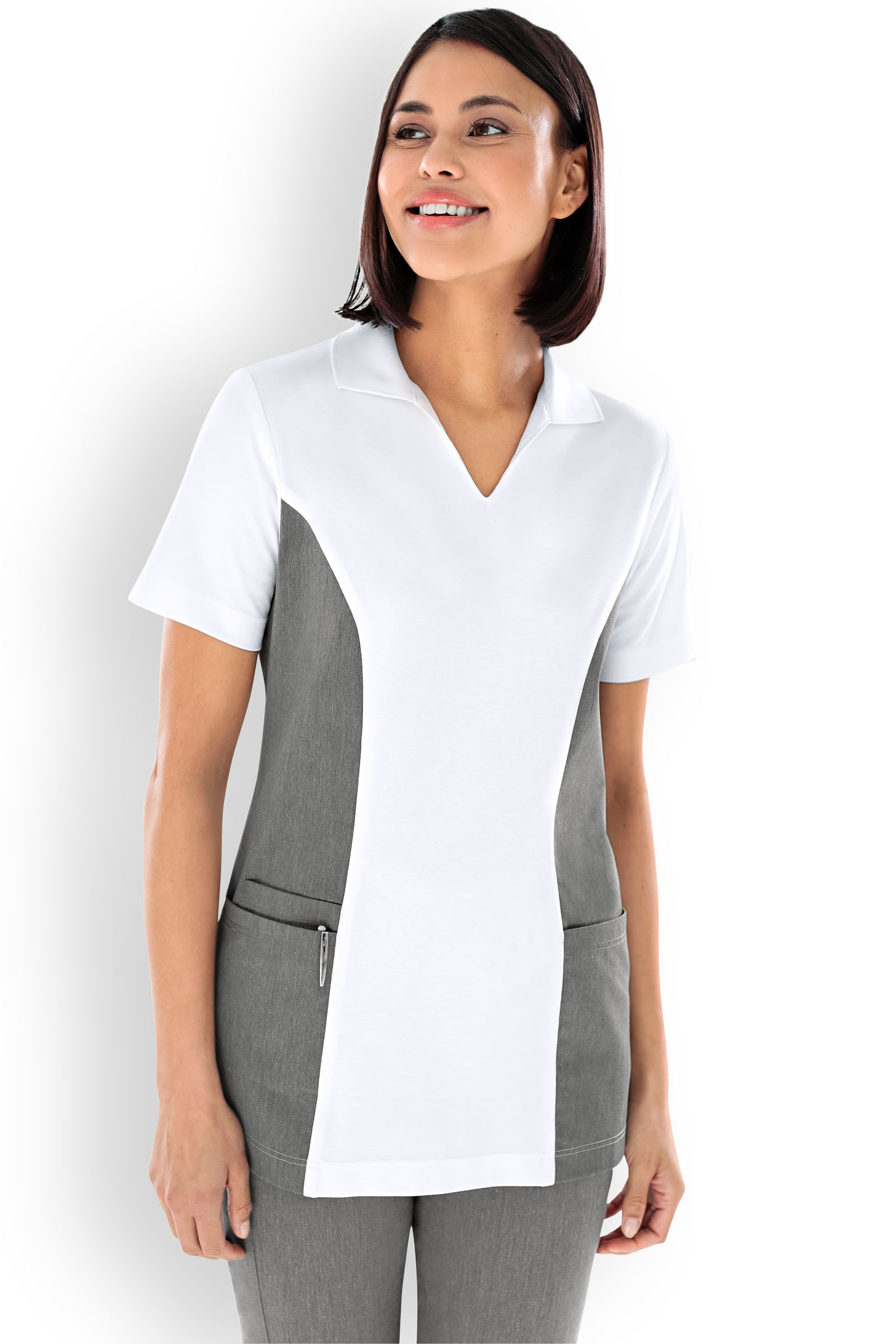 Naisten työtakki, valkoinen tummanharmaa