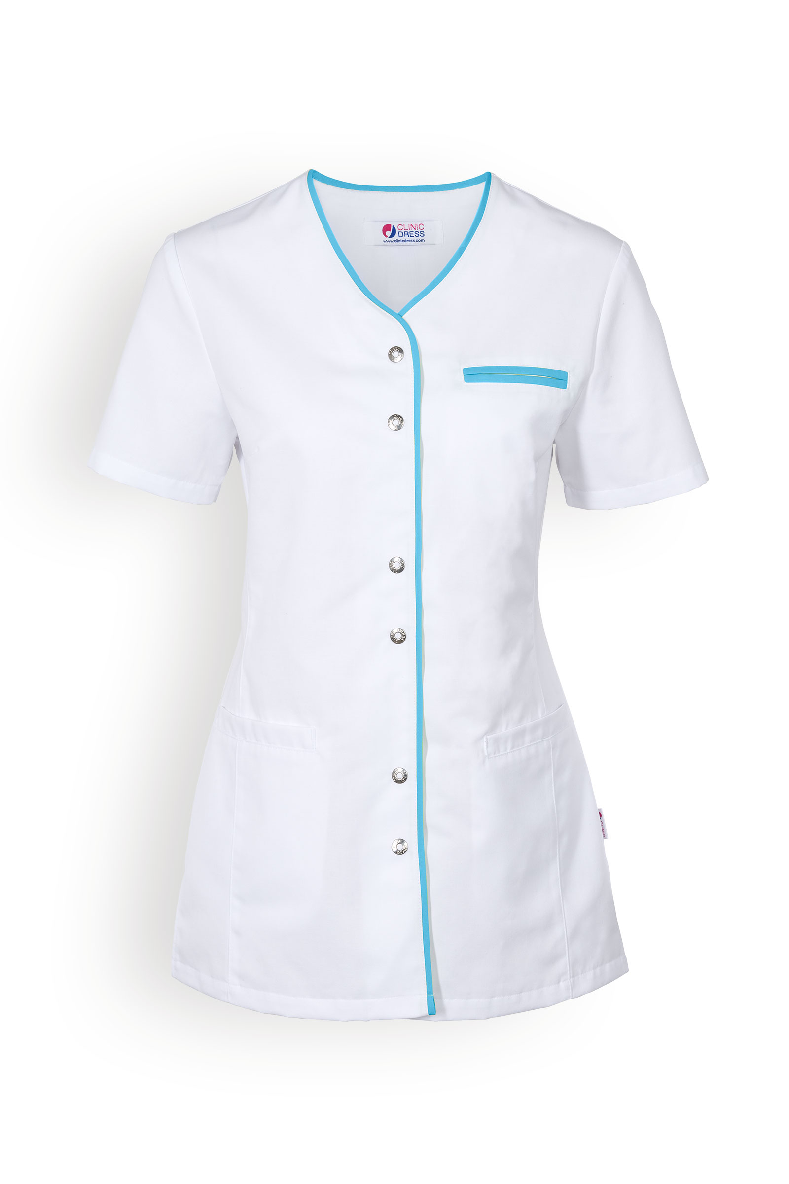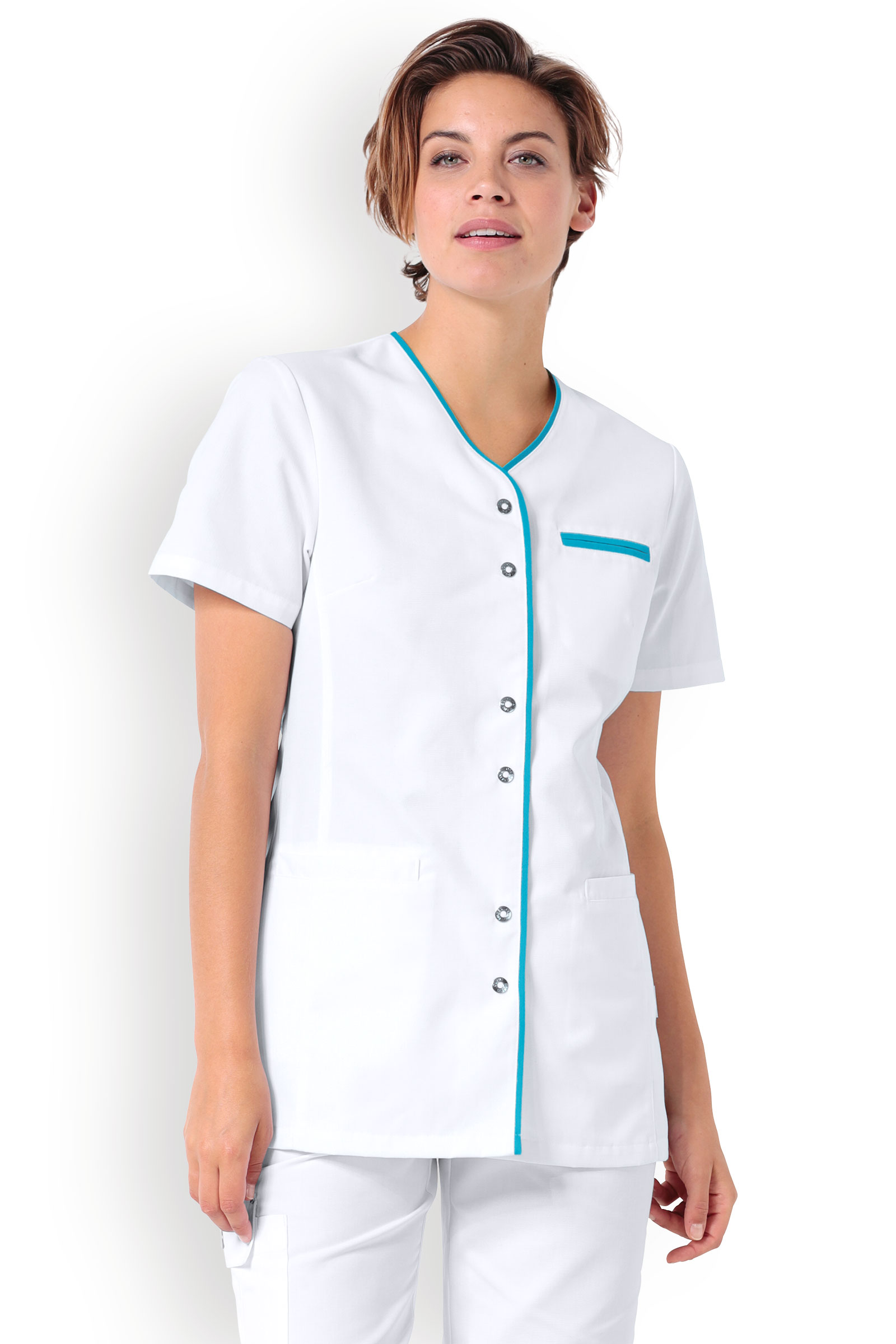 Naisten työtakki, valkoinen-turkoosi