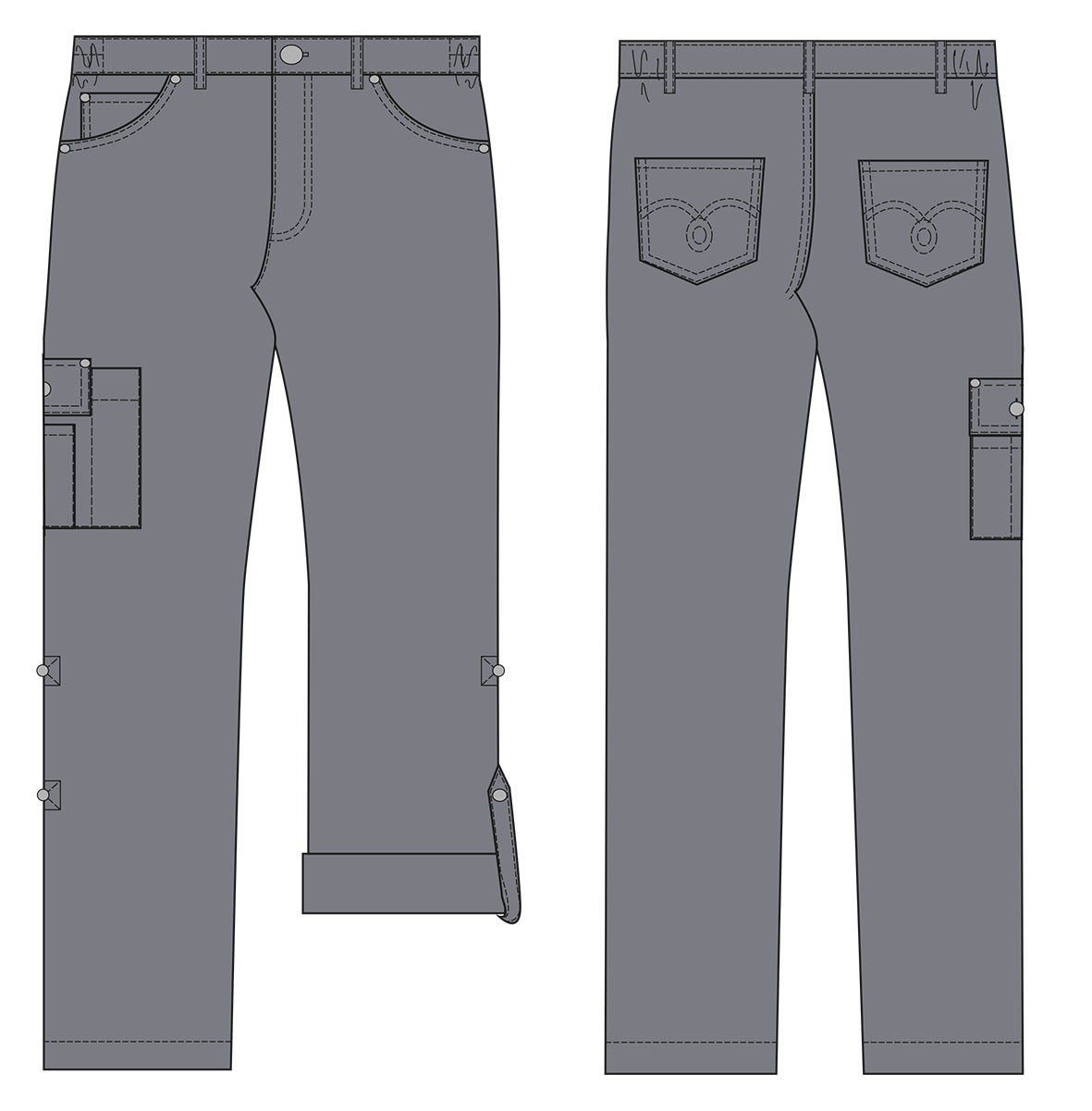 Unisex työhousut, lahkeet käännettävät, harmaat